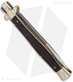 This A.G.A. Campolin Sicilian Picklock knife features a collectable, Italian made design. It has a stainless steel bayonet blade with a polished finish and is marked on the tang “A.G.A. CAMPOLIN ITALY”. The bolstered handle has brass liners, stag horn scales, a sliding safety and pick lock release. This Sicilian automatic knife from A.G.A. Campolin will make an impressive addition to any collection!
