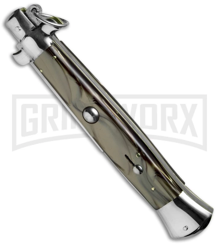 AGA Campolin 15″ Italian Stiletto Olive Brown Swirl Ring Pull Knife – Bayonet