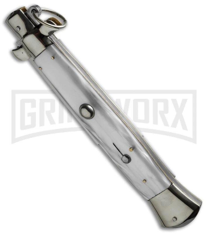 AGA Campolin 15″ Italian Stiletto White Ring Pull Automatic Knife – Bayonet