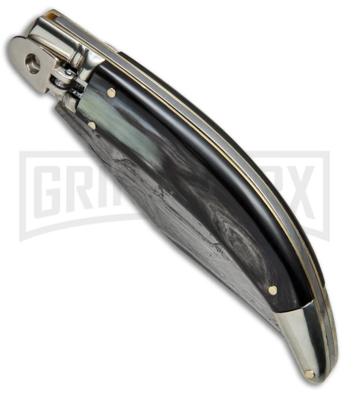 AGA Campolin Diana Dark Horn Lever Lock Automatic Knife – Damascus Plain