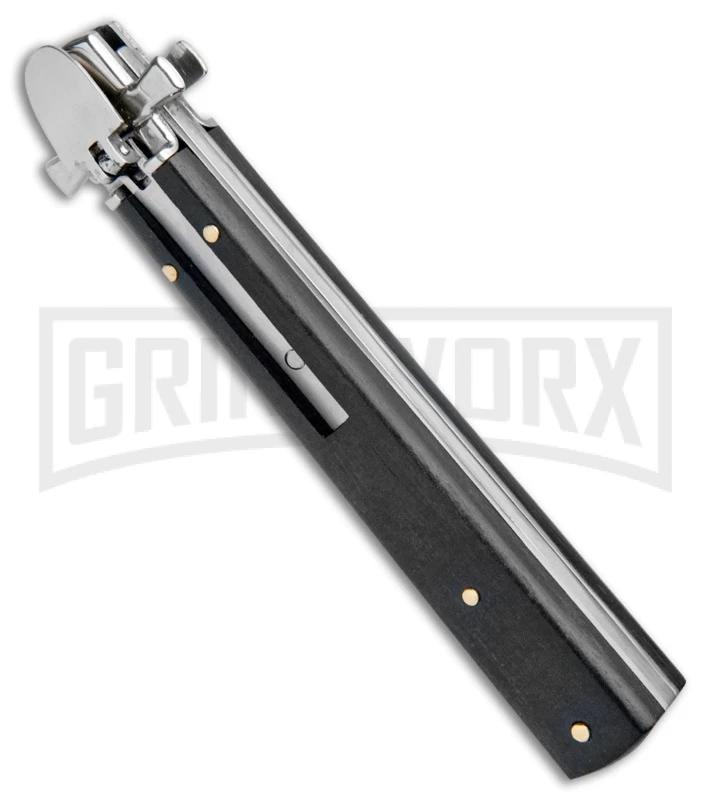 This 9″ Dominus Lever lock Stiletto has an ebony handle and a polished stainless steel bayonet blade.